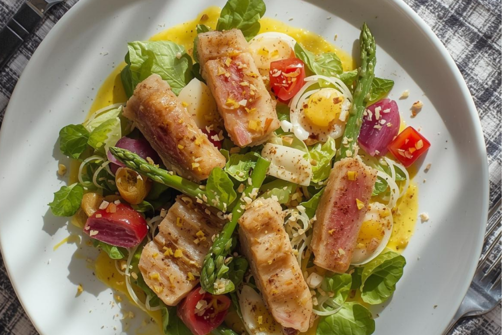 Ensalada templada de espárragos con queso de cabra