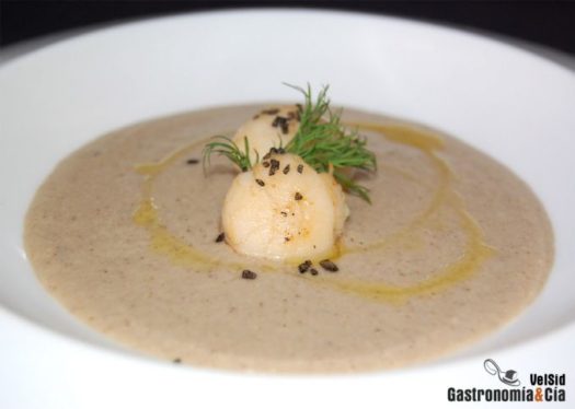 Crema de setas y avellanas con vieiras