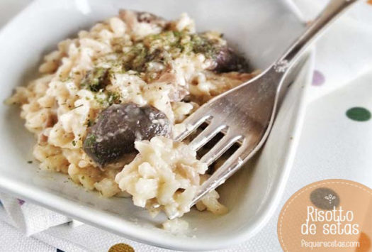 INGREDIENTES 1 litro de caldo de pollo 400 g de arroz carnaroli o arborio (es una variedad de arroz italiana de grano corto ideal para el risotto de setas, también podéis usar alguna variedad de grano redondo) 300 g de setas de conserva 1 cebolla 2 dientes de ajo 1 vasito de vino blanco 75…