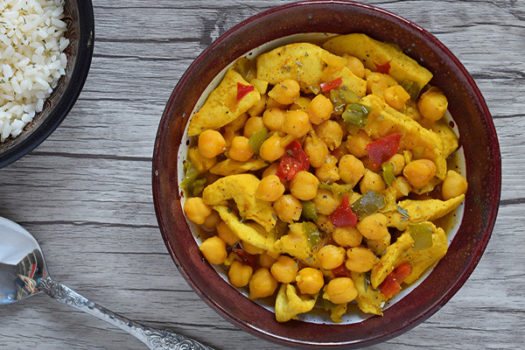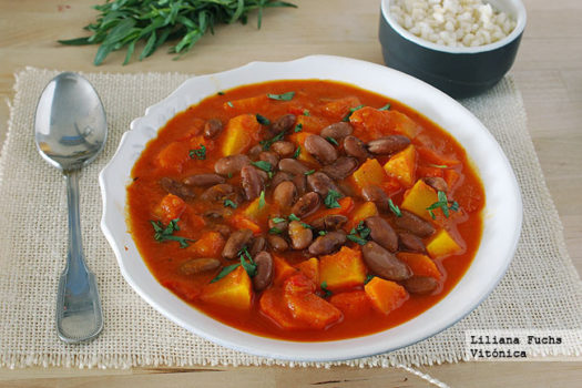 INGREDIENTES 100 g de alubias rojas o blancas 1 cebolla dulce 1 diente de ajo 1/2 pimiento rojo 1/2 pimiento verde 2 zanahorias 225 g de calabaza pelada 1 chorrito de vino blanco 200 g de tomate natural triturado, 1 cucharada de mezcla de especias para curry 1/2 cucharadita de cúcuma molida 1/2 cucharadita de…