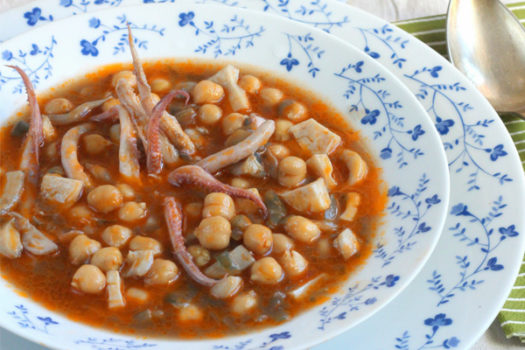 INGREDIENTES Calamar – 1 Cebolla – 1 Tomate – 1 Diente de ajo – 1 Garbanzos El Escolar – 1 frasco Caldo de pescado o fumet ELABORACIÓN Corta el calamar en trozos pequeños, corta el cuerpo en aros o aros, y corta las aletas en trozos pequeños, manteniendo intactos los tentáculos porque dan el toque…
