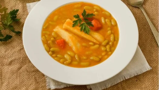 INGREDIENTES 400 g de pochas 1 diente de ajo 1 puerro 1 cebolla 2 zanahorias 1 l de caldo de verduras o pescado 30 ml de aceite de oliva virgen extra Sal Pimentón dulce Azafrán molido o en hebras 300 g de lomo de bacalao fresco ELABORACIÓN Remoje las pochas en un recipiente hondo con…