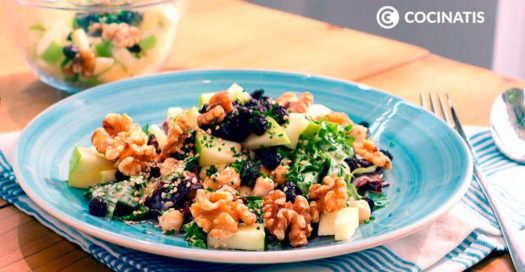 INGREDIENTES Bote de garbanzos Lechuga Manzanas Nueces Arándanos Zumo de limón Mayonesa Comino Pimentón Sésamo Cebollino ELABORACIÓN Para hacer la vinagreta, coloca en un bol el comino, el pimentón, el jugo de limón y la mayonesa y mezcla. Cortar las manzanas en cubos y picar las nueces. Combine hojas de lechuga variadas y garbanzos cocidos…