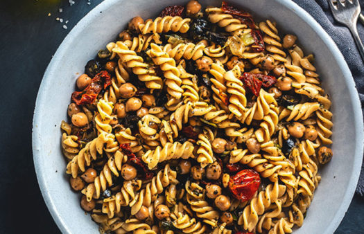 Garbanzos con pasta y vegetales